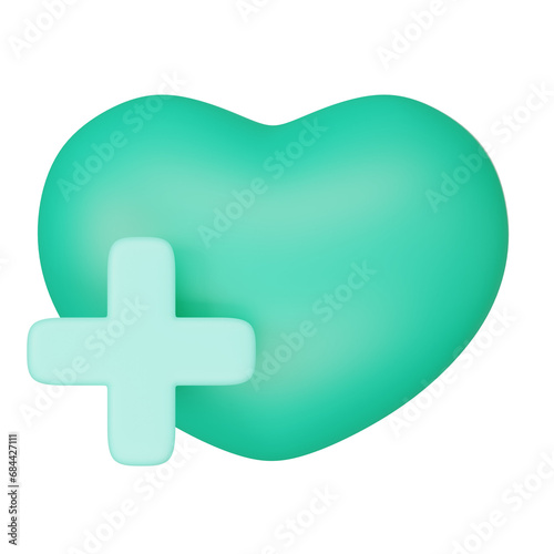 © Nattawat, Fototapeta premium 3d render of red heart with plus sign icon.