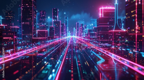 Fototapeta premium 3d render of Technology network for 5g neon and light glowing on dark scene