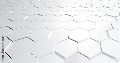 © Waa, Naklejka premium 3d render of white abstract background with hexagon pattern