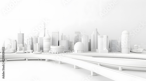 Fototapeta premium 3d render of white map scene with city roads buildings top view isometric perspective