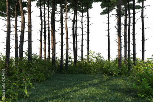 © jomphon, Obraz premium 3D render pine forest with multiple views on a transparent background