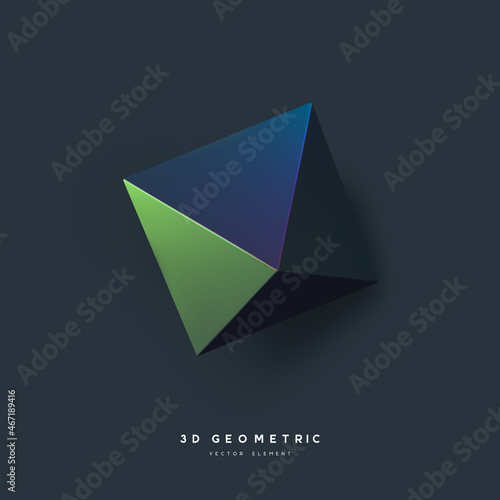 © ludmila_m, Naklejka premium 3d render realistic primitive. Glossy holographic geometric shape isolated on dark background. Iridescent trendy design, thin film effect. Vector.