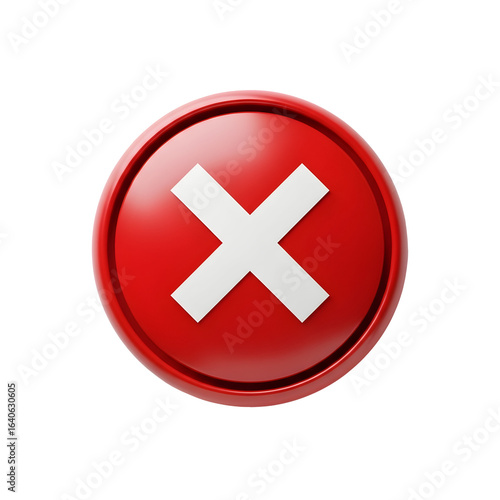 © your picture, Fototapeta premium 3D Render Red Cancel Button Icon with White Cross Symbol Isolated on Transparent Background
