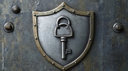 © Sahraya, Fototapeta premium 3d render shield with padlock, key, cross and tick sign. Concept of privacy, good password, secure data protection, computer or phone access security, Vector Illustration in cartoon. 3D Illustration