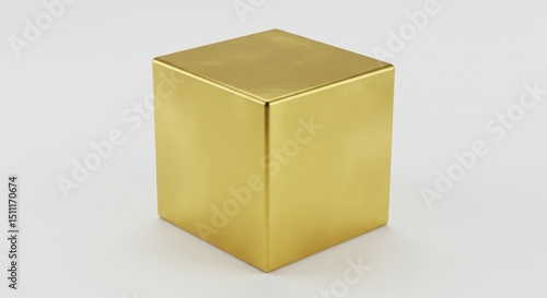 © Harry, Fototapeta premium 3D Render Shiny Gold Cube Metal Block Geometric Shape Illustration