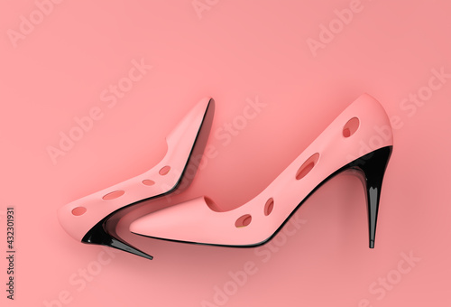 © Redshinestudio, Fototapeta premium 3D Render Stylish classic women's Shoes in high hills on a Color Background.