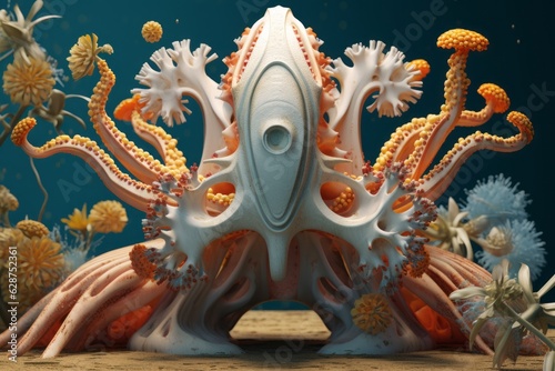 Fototapeta premium 3D Render Surreal Abstract Nature and Geometry Fusion Sculpture
