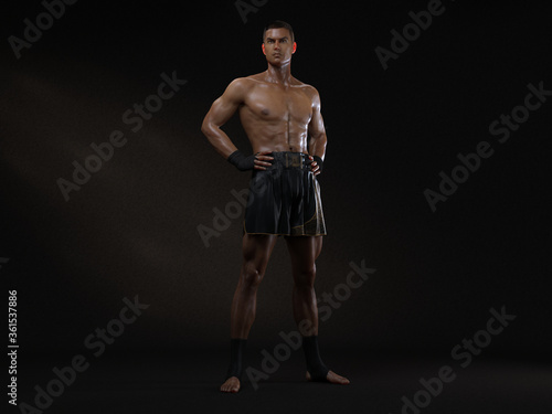 © Tritons, Naklejka premium 3D Render : The portrait of male boxer, perform muay thai martial arts