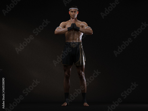 Naklejka premium 3D Render : The portrait of male boxer, perform muay thai martial arts