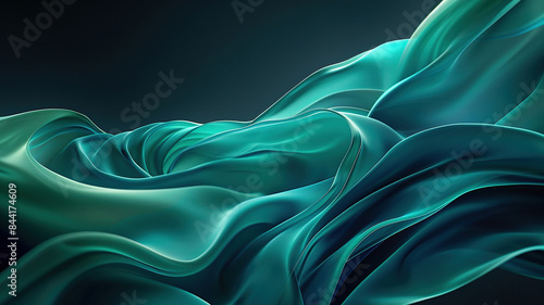 © ulf mine, Obraz premium 3d render wavy green silk shapes abstract background