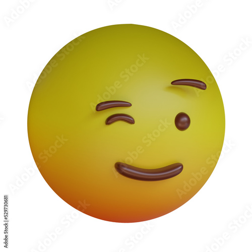© Hallomomina, Fototapeta premium 3d render yellow emoji winking emoticon icon