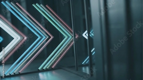 © DesignBee, Obraz premium 3D-Rendered Abstract Technology Background with Vibrant Neon Arrows Representing Direction and Progress