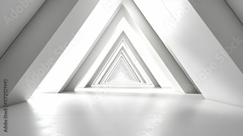 Obraz premium 3D Rendered Abstract White Triangle Corridor, Leading to Bright Light at the End