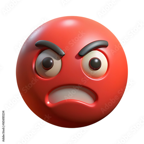 © Al, Fototapeta premium 3D Rendered Angry Red Emoji with Dark Eyebrows and Expression.
