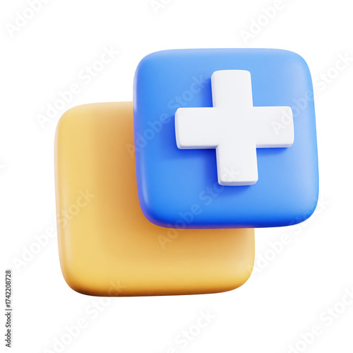 © hensin, Fototapeta premium 3D Rendered Blue and Yellow Add Symbol Icon on Transparent Background
