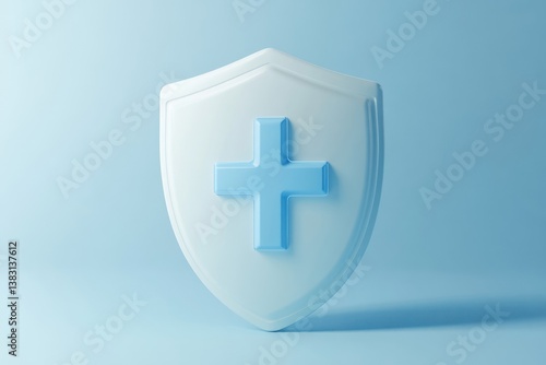 © redflower, Obraz premium 3D Rendered Blue Cross Shield Icon on White Background