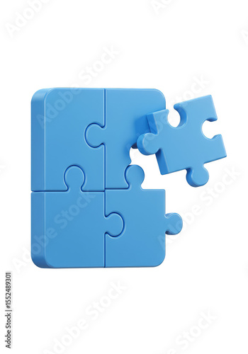 Obraz premium 3D Rendered Blue Puzzle Pieces Connection Solution on Transparent Background