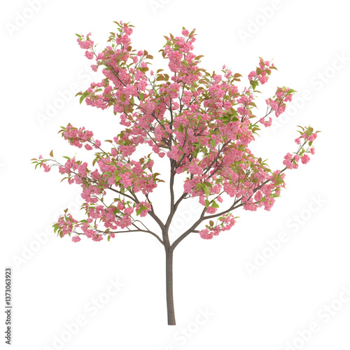 Fototapeta premium 3D Rendered Cherry Tree Sapling with Blossoms Isolated on Transparent Background