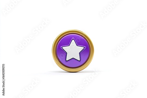 © Zahida, Fototapeta premium 3D rendered gold-edged, purple button with a white star