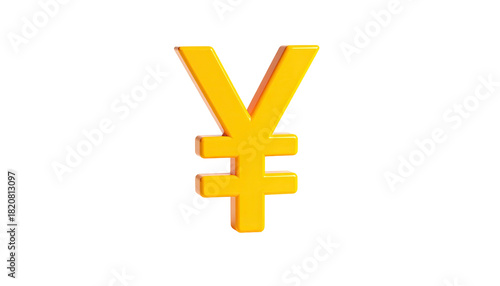 © Dannie, Obraz premium 3D rendered gold Yen symbol floating against a black background