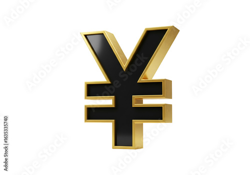 Obraz premium 3D Rendered Illustration of a Gold and Black Yen Symbol on Black Background