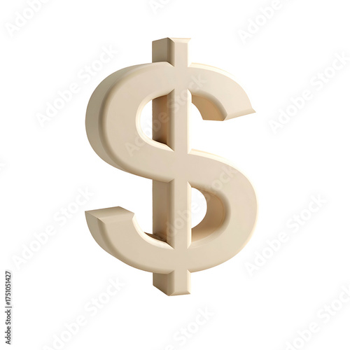 Fototapeta premium 3D rendered, ivory-colored dollar sign against a black background, slightly angled