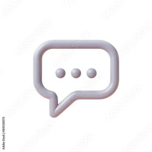 Naklejka premium 3D rendered light grey chat bubble icon with three dots, symbolizing...