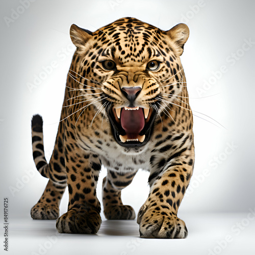 © Wazir Design, Fototapeta premium 3D rendered of a big leopard isolated on white background.