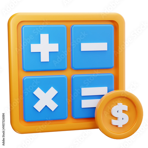 © Barudak Lier, Fototapeta premium 3d rendered orange calculator with a dollar sign