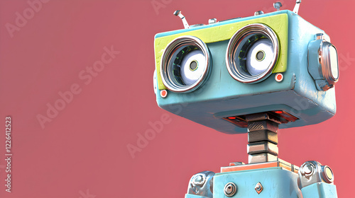 © Abas, Fototapeta premium 3D rendered Pastel Robot in Blue, Pink, and White - red background