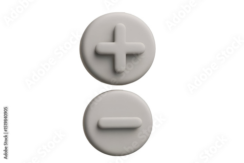 Obraz premium 3D rendered plus and minus symbols, light grey, circular