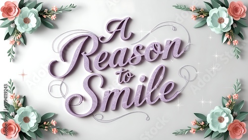 © Get it, Naklejka premium 3D rendered text "A Reason to Smile" with pastel flowers.