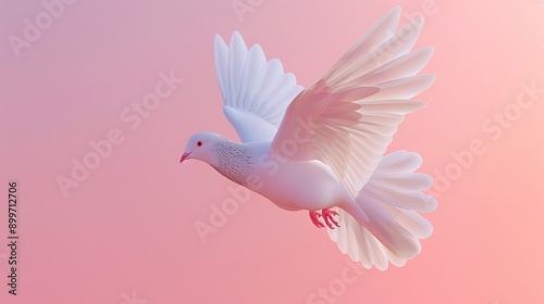 Obraz premium 3D rendered white dove in flight, showcasing its elegant wings and peaceful nature, set against a soft gradient background.