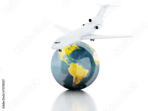 Fototapeta premium 3d renderer illustration. airplane and world globe. travel conce
