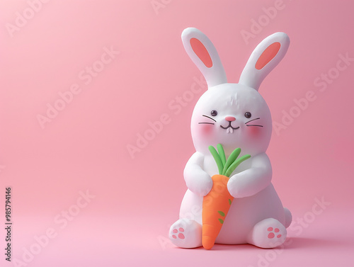 Obraz premium 3d rendering a cute bunny holding a carrot on pink background, character cartoon