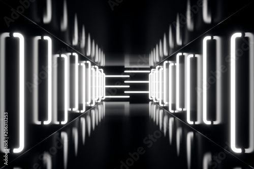 Obraz premium 3D rendering abstrac futuristic dark corridor with neon lights. Glowing...