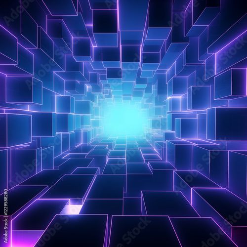 © pier, Obraz premium 3d rendering abstract background glowing cubes blue purple geometric shapes futuristic space for text