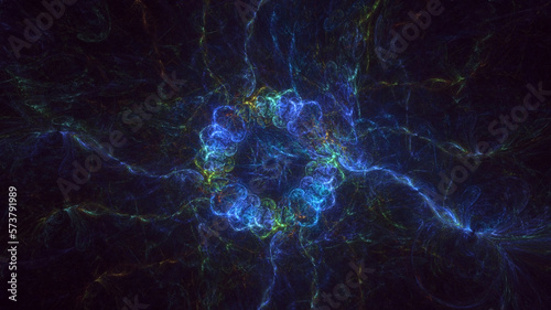 © BetiBup33, Obraz premium 3D rendering abstract blue fractal light background