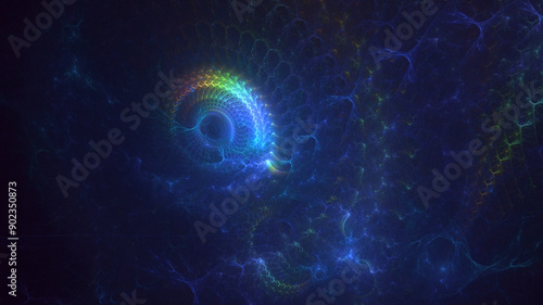© BetiBup33, Obraz premium 3D rendering abstract blue technology fractal background. Its not AI Generatd illustration.