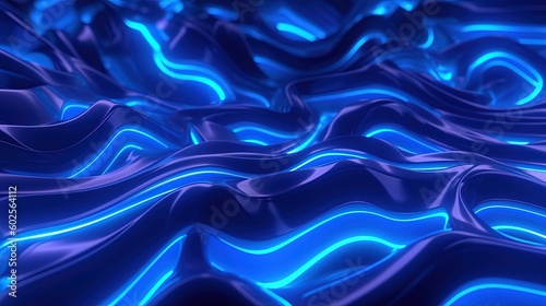 © Rudsaphon, Obraz premium 3d rendering Abstract blue wavy background.Generative Ai