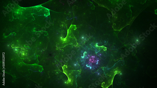 © BetiBup33, Fototapeta premium 3D rendering abstract green fractal light background