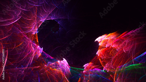 © BetiBup33, Obraz premium 3D rendering abstract red fractal light background
