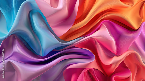 © Sholichatul, Obraz premium 3d rendering, abstract silk fabric background. Colorful textile pieces slice by slice. Cloth waving and fluttering.