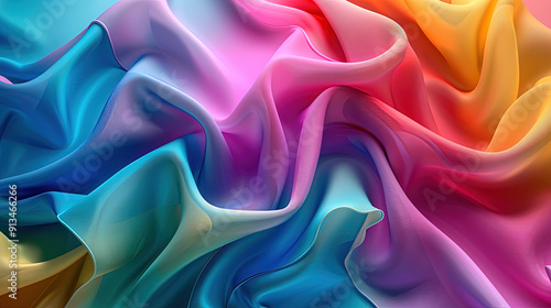© Sholichatul, Obraz premium 3d rendering, abstract silk fabric background. Colorful textile pieces slice by slice. Cloth waving and fluttering.