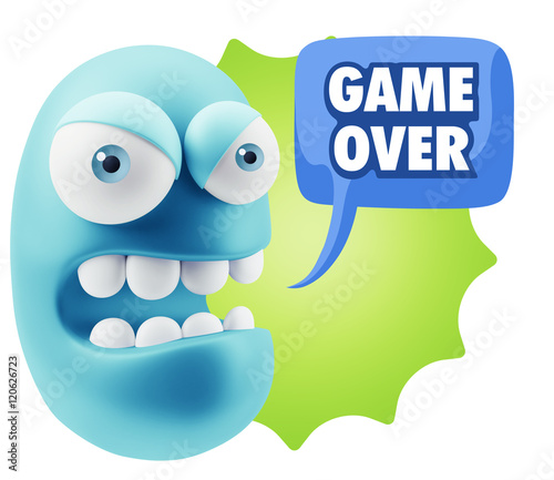 © xtock, Naklejka premium 3d Rendering Angry Character Emoji saying Game Over with Colorfu