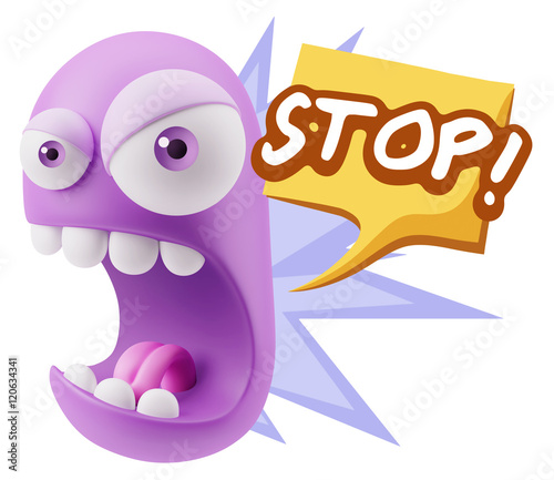 © xtock, Obraz premium 3d Rendering Angry Character Emoji saying Stop with Colorful Spe