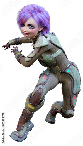 © photosvac, Fototapeta premium 3D Rendering Anime Astronaut Girl on White