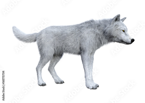© photosvac, Fototapeta premium 3D Rendering Arctic Wolf on White