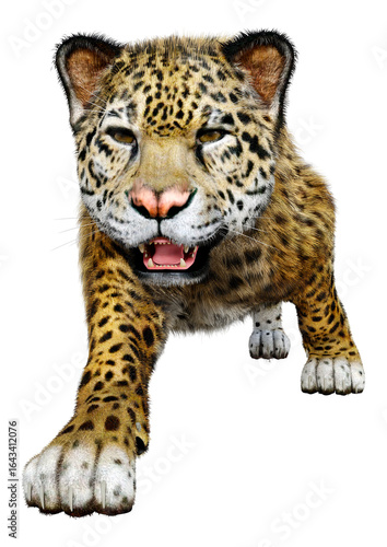 © photosvac, Fototapeta premium 3D Rendering Big Cat Jaguar on White