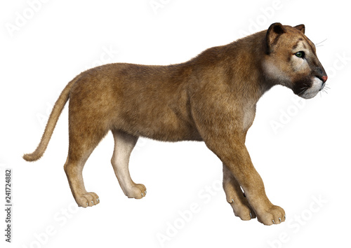 © photosvac, Obraz premium 3D Rendering Big Cat Puma on White